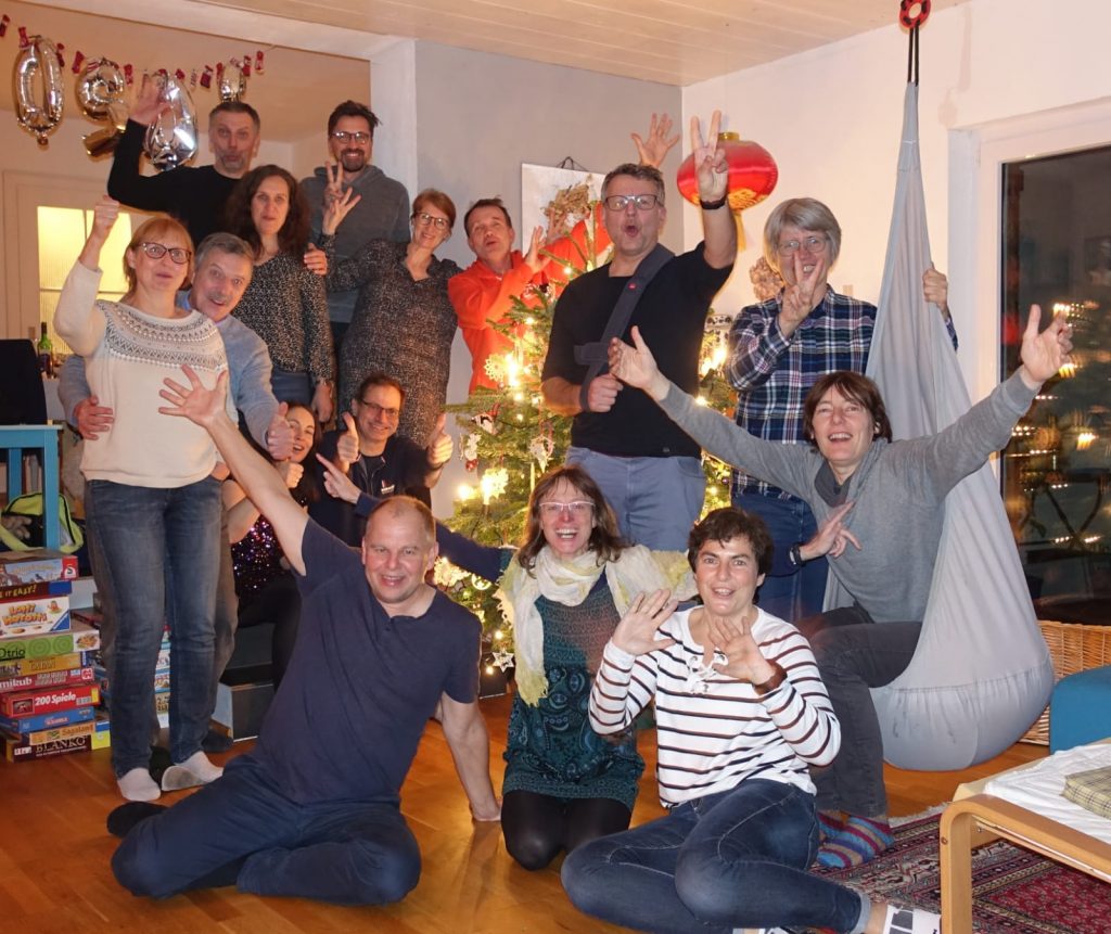 (v.l.n.r. Inge Hohe, Gerold Hohe, Herbert Grimm, Sabine Grimm, Daniela Eisfeld, Friedl Brandhofer, Bernd Faist, Ulrich Pannicke, Christine Brandhofer, Uli Radetzky, Ursl Schedel, Christian Eisfeld, Christine Veeh, Brigitte Faist, Gabi Breunig.)