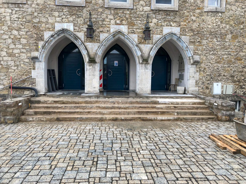 Die Arbeiten am Vorplatz unserer TVO-Halle sind weitgehend abgeschlossen. Nun wird in den nächsten Tagen die Treppe erneuert. Dazu wurden am Samstag bei einem Arbeitseinsatz von einigen TVOlern die vorbereitenden Arbeiten ausgeführt. Mehrere Schichten Mörtel und Gittergeflecht mussten entfernt werden um das ursprüngliche Treppenfundament freizulegen. Die Treppe wird dann voraussichtlich bis 25. Juni gesperrt. Der Zugang in die Halle erfolgt in dieser Zeit über den hinteren Eingang.