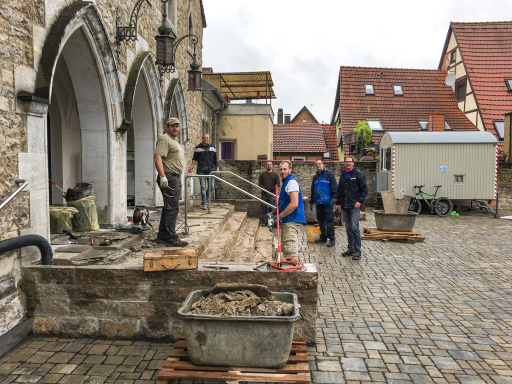 Beim Einsatz an der Treppe (v.l.n.r.): Martin Hartel, Otmar Reißmann, Thomas Warren, David Weigand, Jan Kohlhepp, Hubert Karl