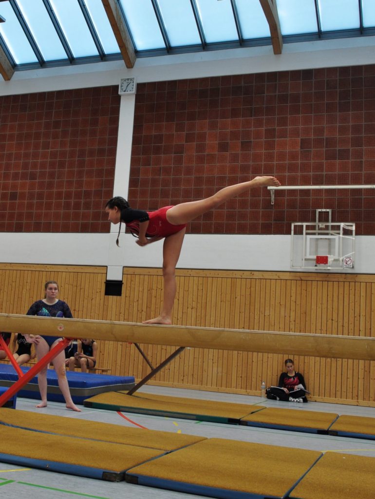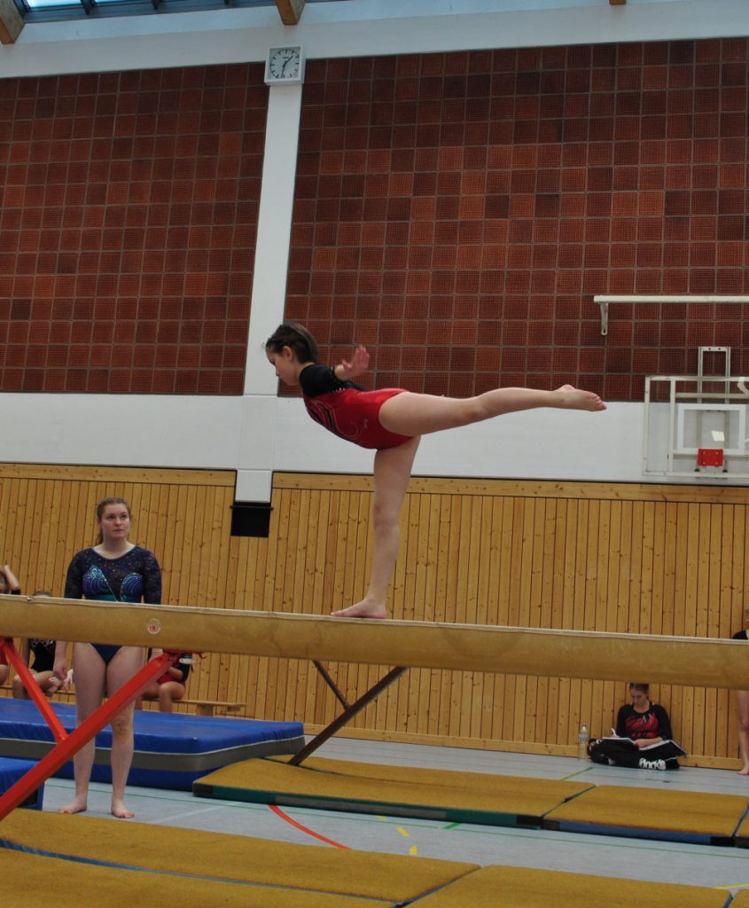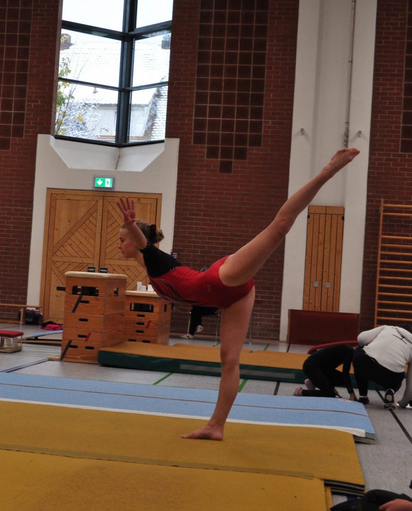 Am 19.11. starteten 11 Turnerinnen nach drei-jähriger „Corona-Zwangspause“ wieder beim Turn10-Einzelwettkampf in Rottendorf. Bei diesem Wettkampf ist es die Besonderheit, dass es 5 Geräte zur Auswahl gibt, Boden, Schwebebalken, Reck, Sprung und Minitrampolin. Mit eigens kreierten Übungen am Balken, Boden und Reck und einstudierten Sprüngen am Minitrampolin oder über den Kasten oder Tisch traten sie am Samstag Nachmittag an. Verletzungsbedingt musste Nelly Erbel leider diesen Wettkampf auslassen, aber dennoch ging sie als Unterstützung und Motivation mit den anderen Mädchen mit. Als Jüngste ging Hanna Streit in der Altersklasse 10, also Jahrgang 2012, an den Start. Sie erturnte sich den 11. Platz.