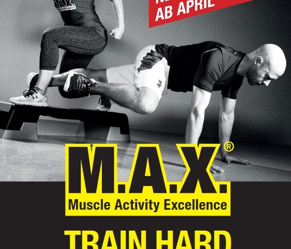 M.A.X.® ist ein hochintensives Kraftausdauertraining mit dem Schwerpunkt Muskel und Bodytoning. In diesem Workout wird Ausdauer, Kraft und Koordination optimal miteinander verknüpft. Einfacher Übungsablauf, motivierendes Training zu cooler Musik, mentale & körperliche Herausforderung, steigert die Ausdauer, kräftigt & strafft die Beine, Gesäß, Oberkörper & Rumpfmuskulatur, verbessert das Balancegefühl und die Koordination, optimiert den Fettstoffwechsel, steigert die Kondition. Informationsvideo hier abrufbar: www.youtube.com/watch?v=13AbvXdhxIo