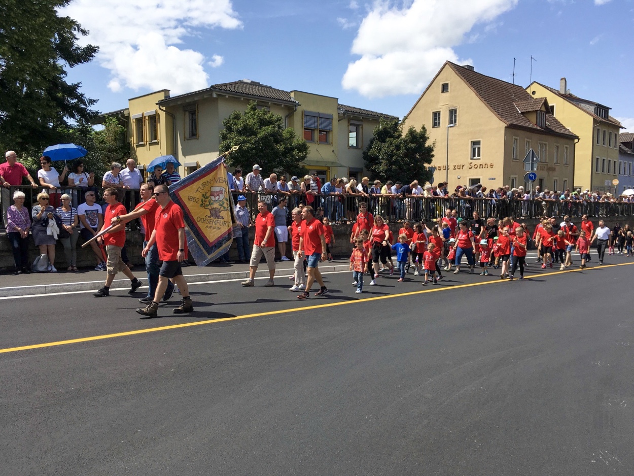 Bei herrlichem Wetter nahmen mehr als 60 TVO-Mitglieder und ihnen allen voran die Turnkinder am diesjährigen Pfingstritt teil. Unter Applaus der vielen Besucher am Wegrand zeigten die kleinen Turnerinnen auf dem Asphalt ihr Können beim Radschlagen, Spagat u.v.m.