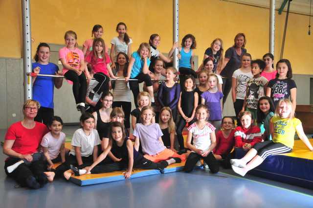 Bei den 10 und 11-jährigen Turnerinnen starteten: hinten v.l. Loretta Keller, Vanessa Henneberger, Marleen Wagner, Anja Schmitt und vorne eine strahlende Miriam Hufgard.