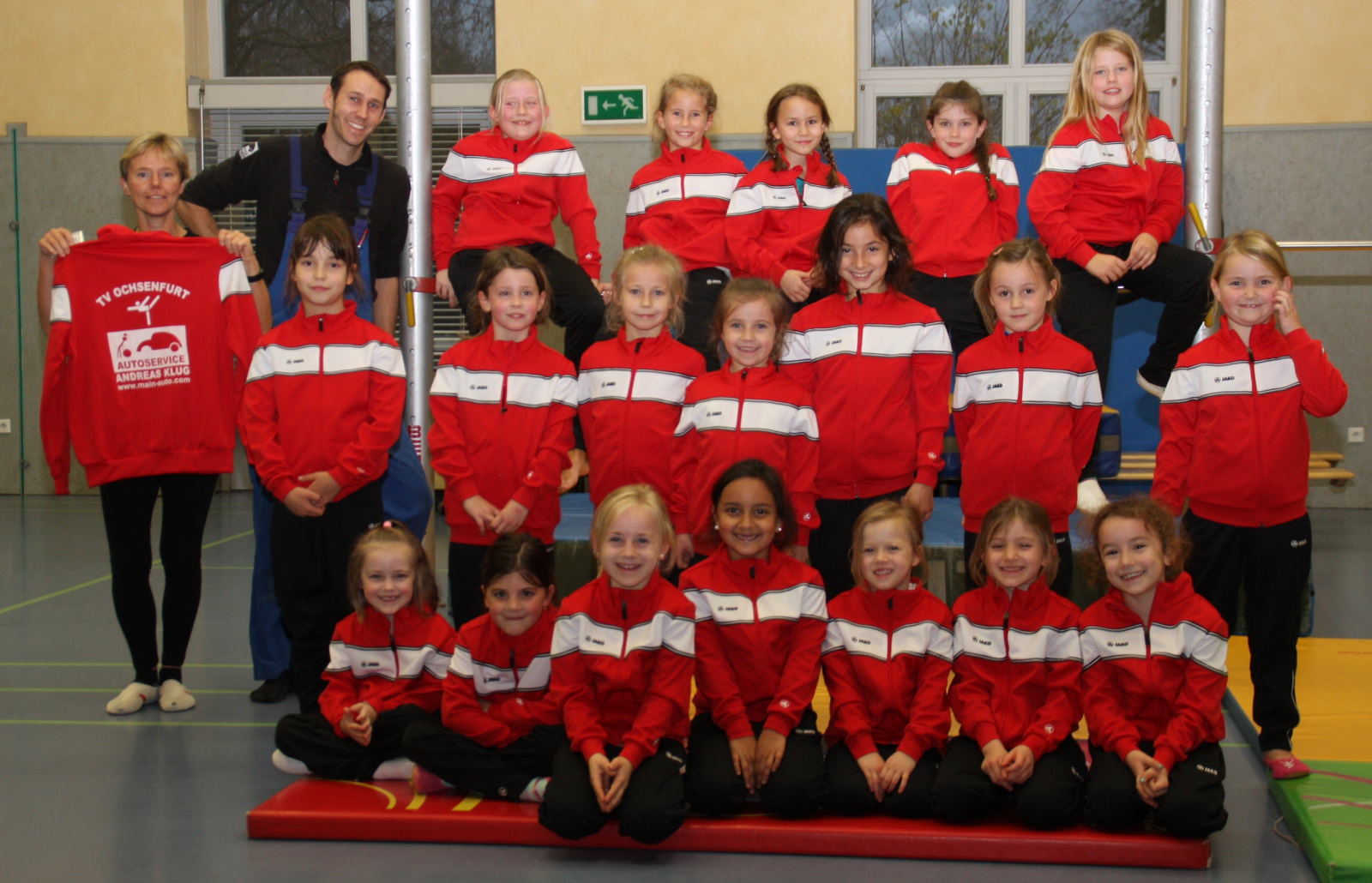 http://www.tvochsenfurt.de/?p=1009Die Turnerinnen des TV Ochsenfurt freuen sich über die großzügige Spende über 1.015 € von Autoservice Andreas Klug Goßmannsdorf für neue Trainingsanzüge.
