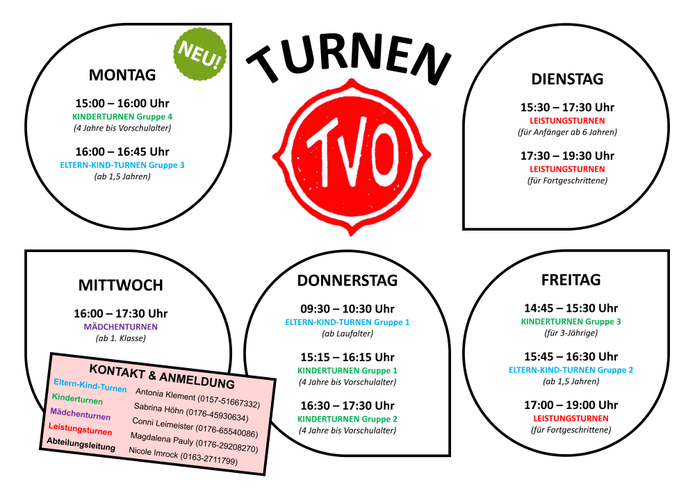 Die Turnabteilung startet mit zwei zusätzlichen Gruppen am Montag in das neue Schuljahr und kann so noch mehr turnbegeisterten Kindern ein Sportangebot beim TVO machen! Wir freuen uns auf euch 😊