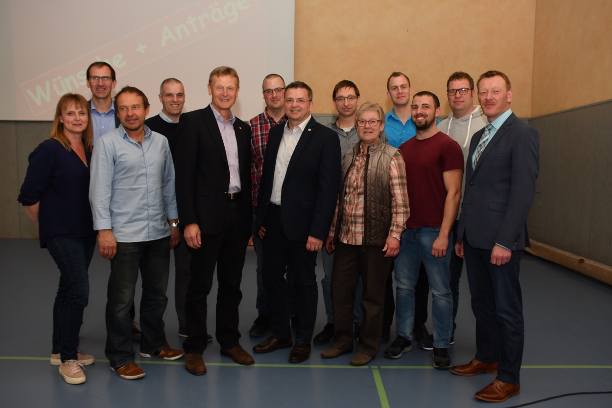 Alter und neuer Vorstand: v.l.n.r. Sabine Radetzky (stellv. Vorsitzende Finanzen), Hubert Karl (ehem. Vorsitzender Sport), Rudolf Erbel (neuer stellv. Vorsitzender Verwaltung), Otmar Reißmann (neuer Vorsitzender Liegenschaften), Dr. Klaus Ziegler (ehem. Vorsitzender Verwaltung), Jan Kohlhepp (neuer Vorsitzender Sport), Steffen Krämer (neuer Vorsitzender Verwaltung), Marco Schuler (Vorsitzender Schriftführer), Renate Egger (Vorsitzende Verwaltung), David Weigand (neuer stellv. Vorsitzender Sport), Thomas Warren (neuer stellv. Vorsitzender Schriftführer), Matthias Weidinger (stellv. Vorsitzender Liegenschaften), Bürgermeister Peter Juks