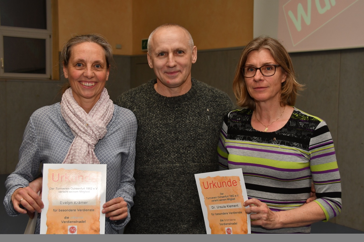 Mit Ehrennadeln des TVO ausgezeichnet: v.l.n.r. Evelyn Krämer, Wassili Tschernjawski, Dr. Ursula Klement (nicht auf dem Bild aber ebenfalls geehrt Hans-Karl Öhrlein)