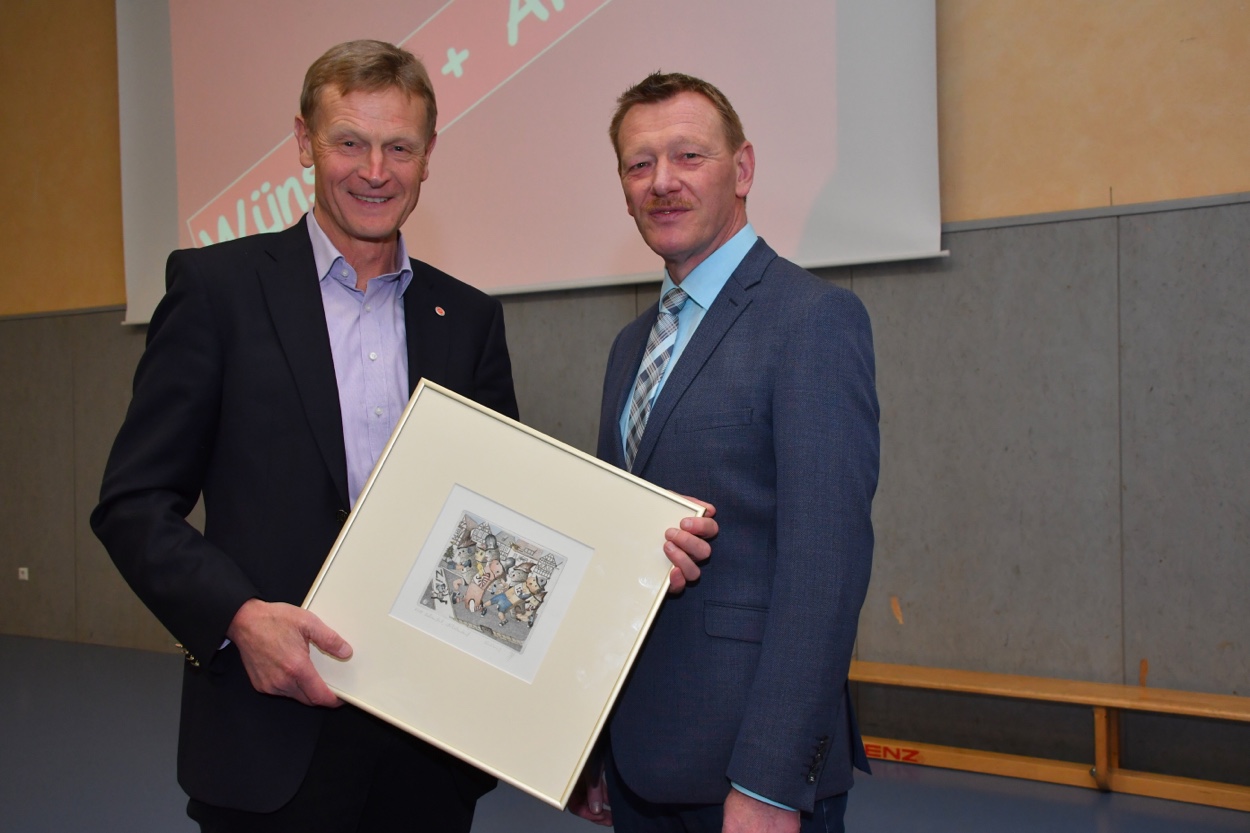 Bürgermeister Peter Juks dankt dem ausscheidenden Vorstandsmitglied Dr. Klaus Ziegler für sein Wirken und die stets sehr gute Zusammenarbeit