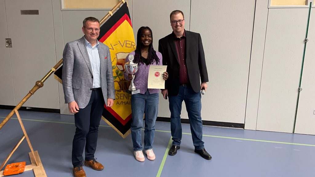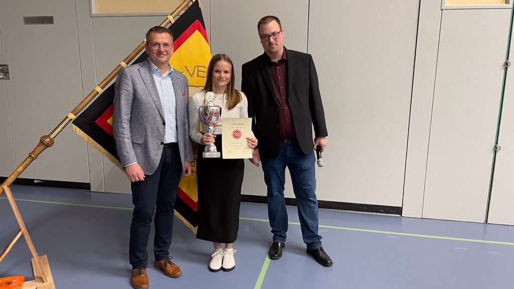 Für sportliche Leistungen in 2023 wurden geehrt: Rebecca Heizenröther als Sportlerin des Jahres; Christian Kunisch als Seniorensportler des Jahres; Rania Offe als Jugendspielerin des Jahres.